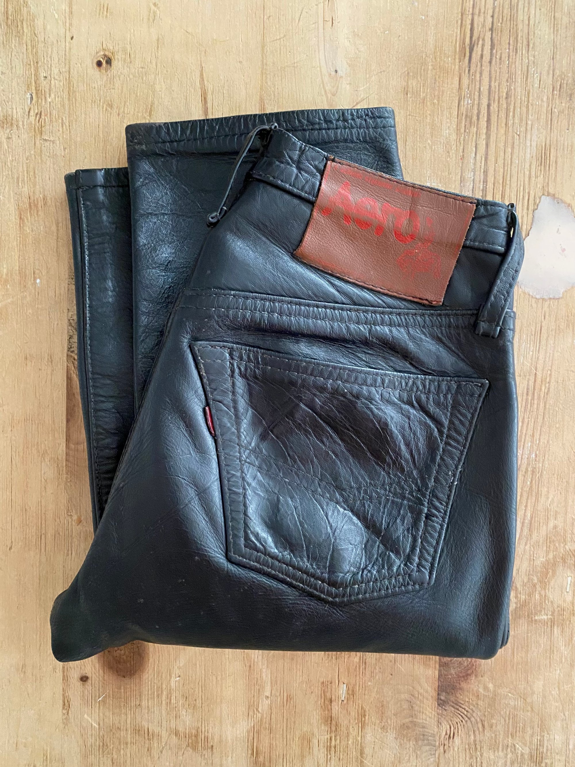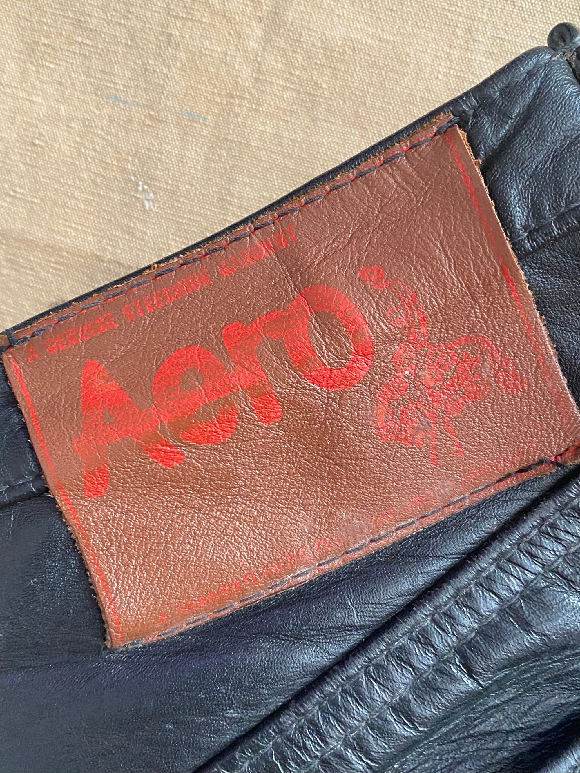 A cool pair of leather trousers from iconic brand Aero Leather Clothing.