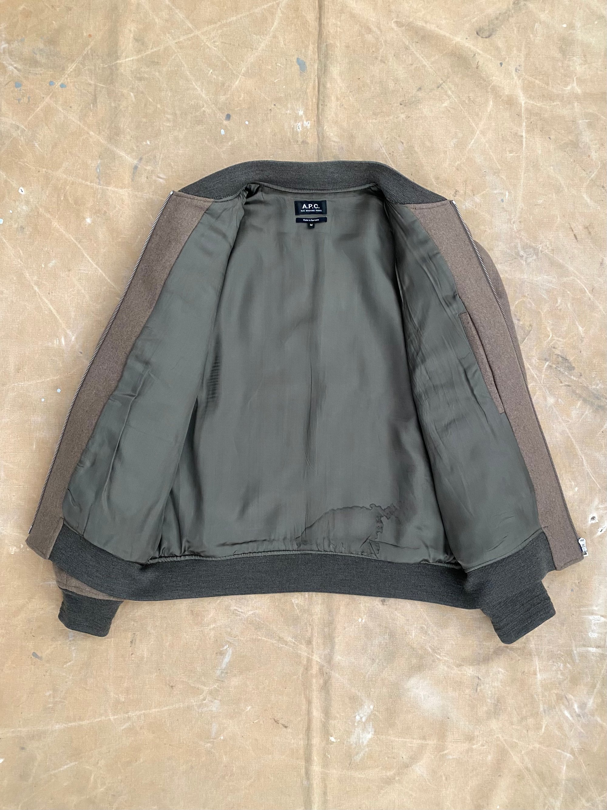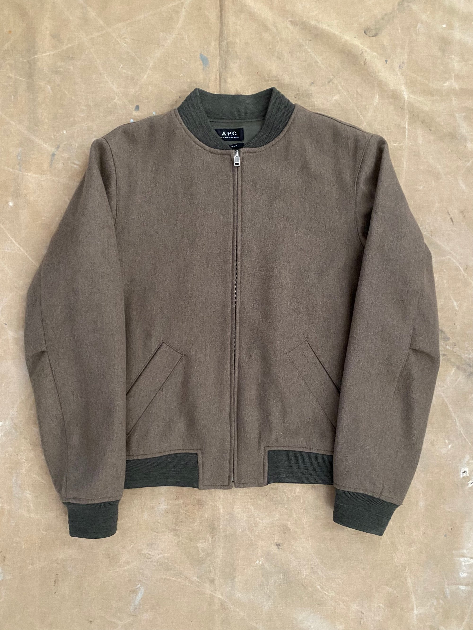 The A.P.C. Gaston Bomber Jacket is a classic bomber-style jacket crafted from heathered Italian felted woollen cloth, designed with a water-repellent finish.