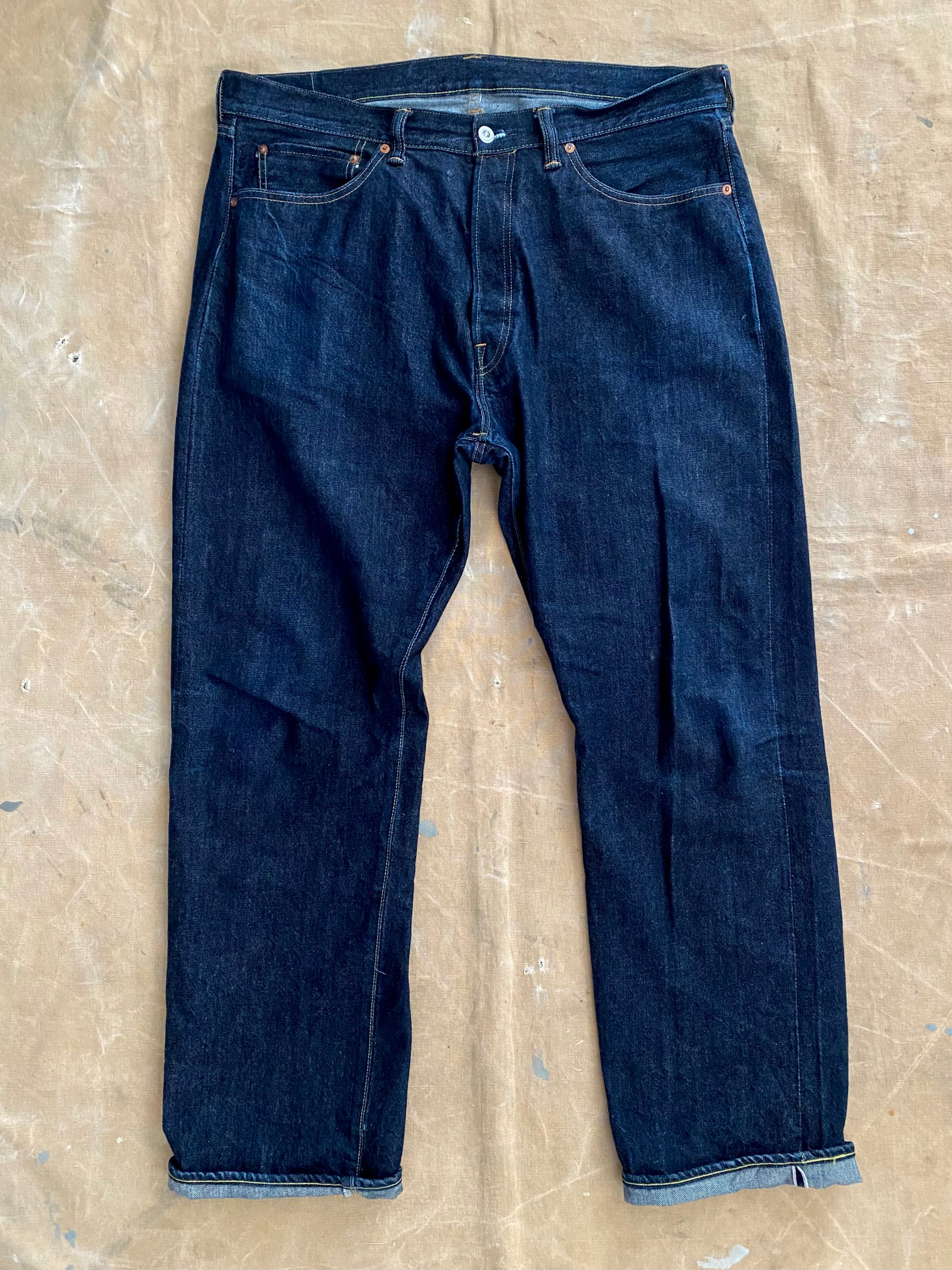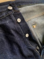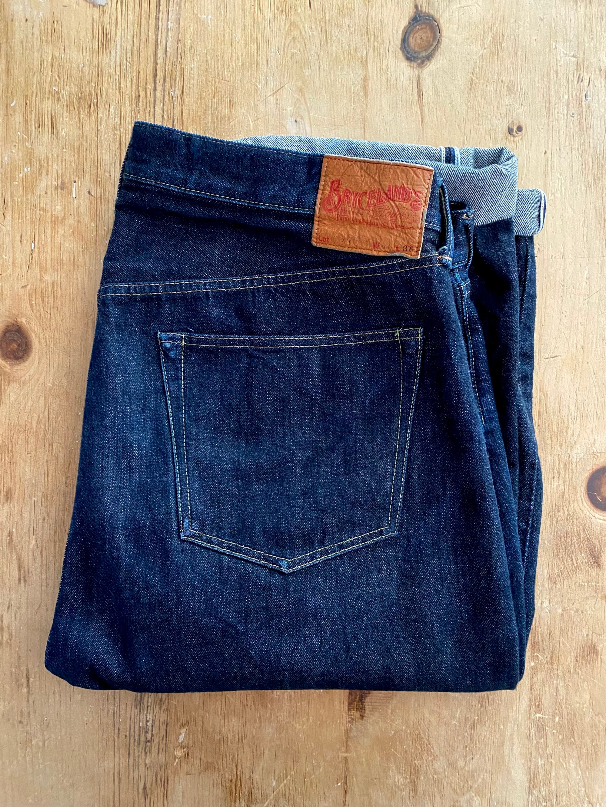 Made in Okayama from 13oz denim, they carry unfinished iron buttons, meant to tarnish and age over time. Without any branding other than the leather patch, the hope is that as the brand fades from that leather, they become completely yours.