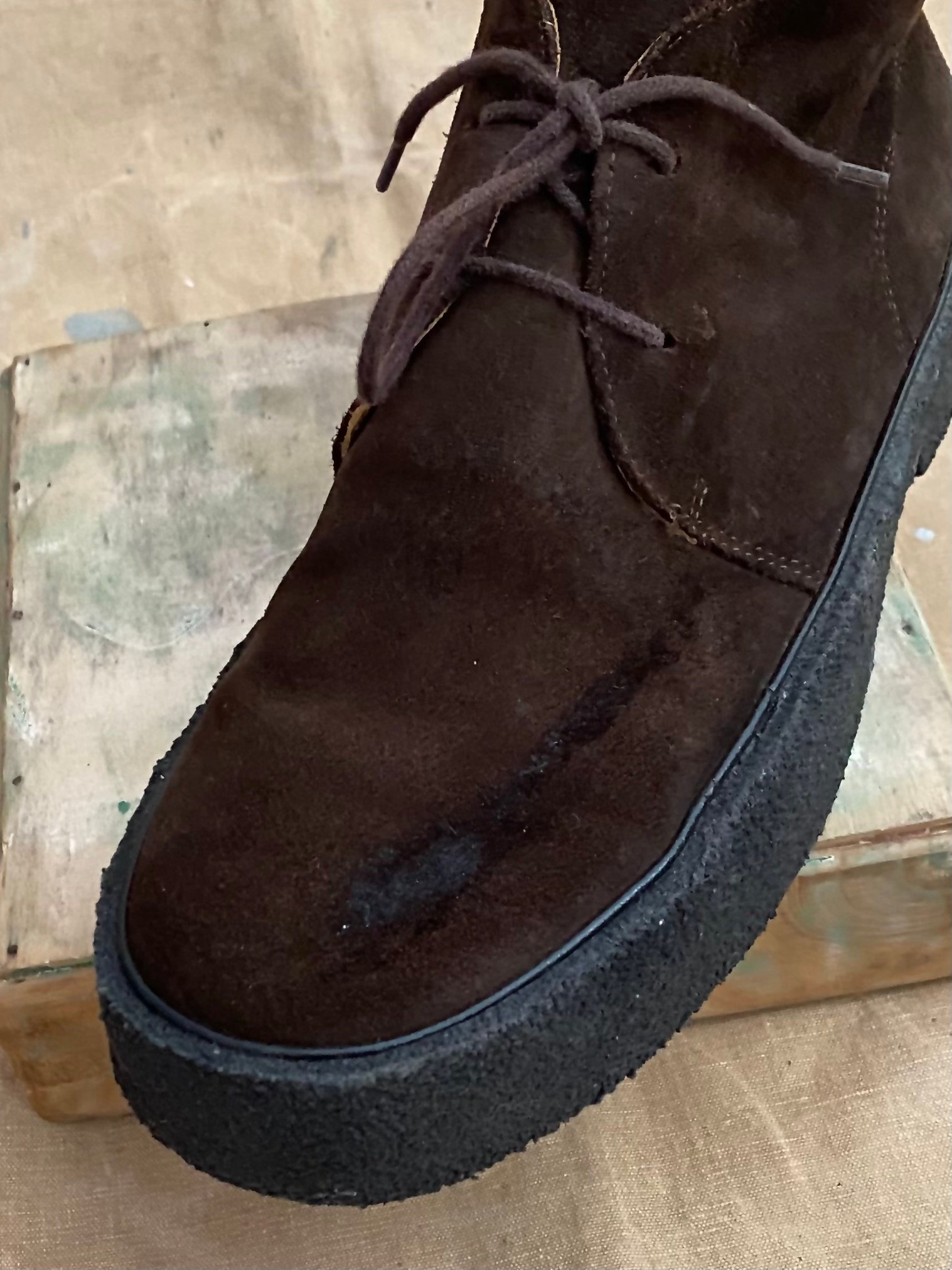 CONDITION Despite a mark (stain) on the left one, the boots are actually in very good condition. They have been worn a very few times and sole is pretty much new. They come without box.