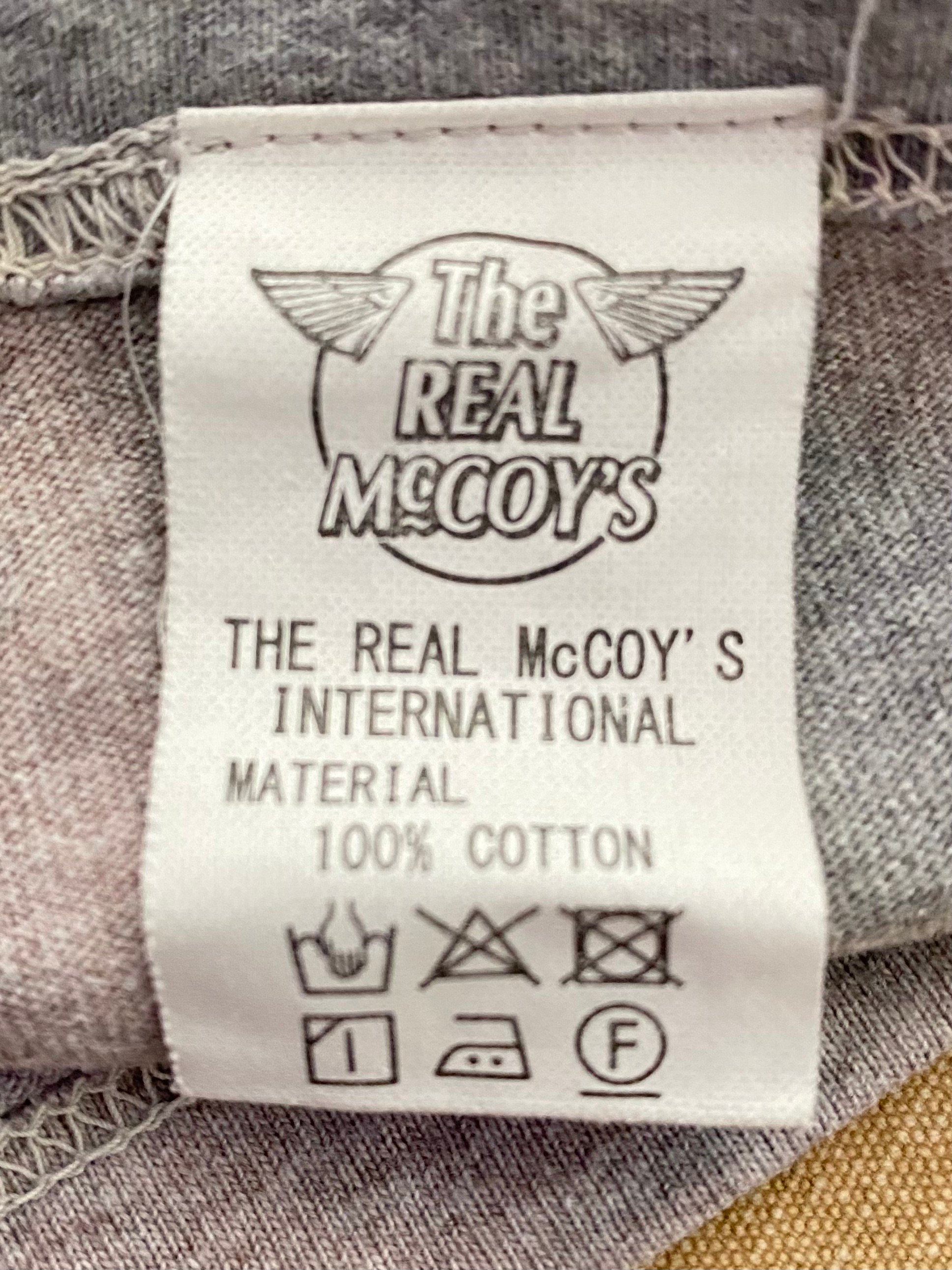 The Real McCoy's long sleeve logo tee L/S is a standard fitting t-shirt made from 8oz cotton. The binder neck is designed to maintain the shape of the neckline over time and through repeated washes. The Real McCoy’s Wing logo is rubber-printed.