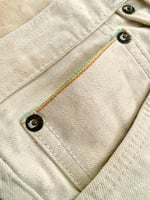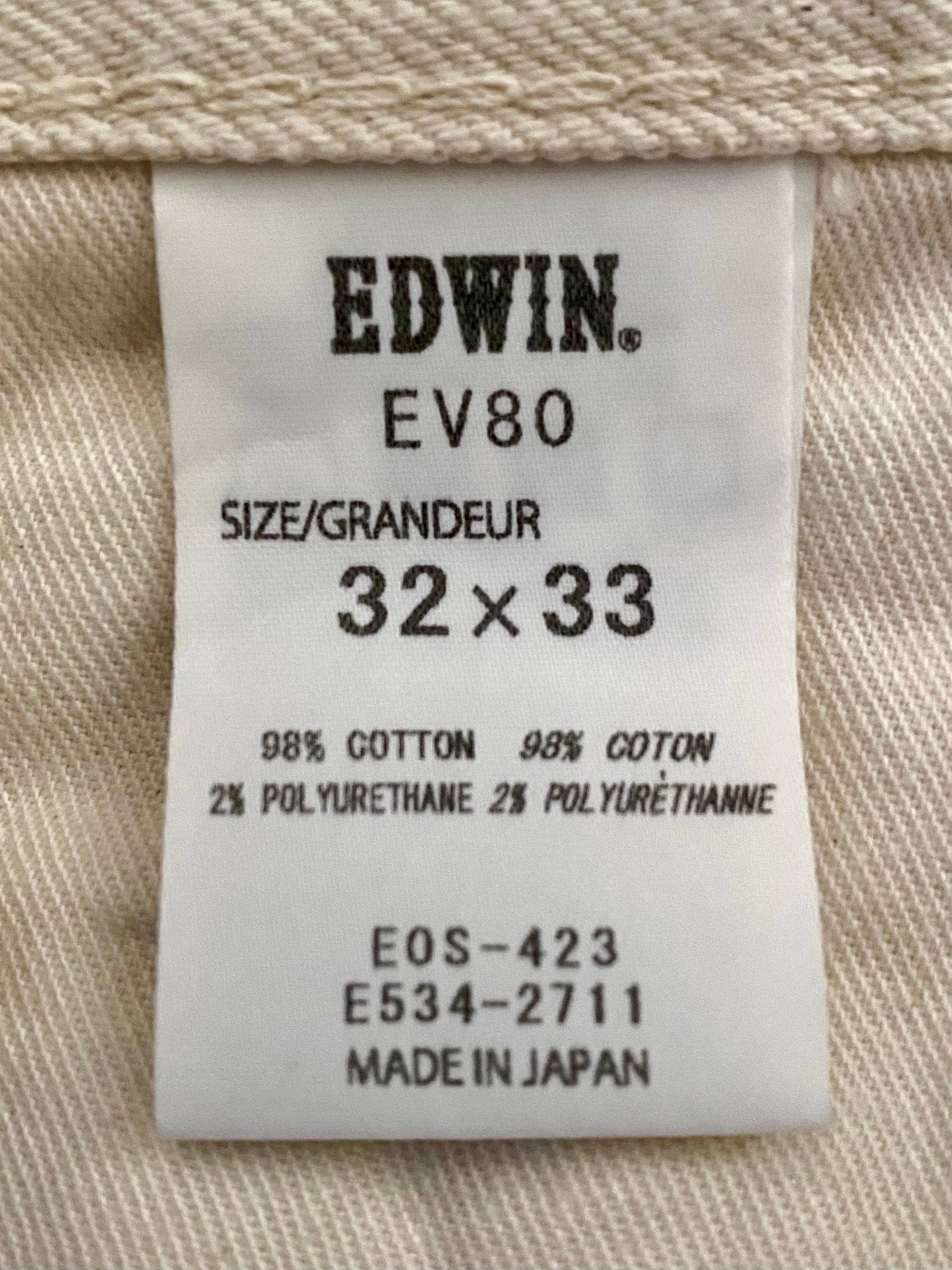 A cool pair of Edwin Lot ED-80 "Made in Japan" ivory selvedge denim jeans - a premium special model crafted in collaboration with the renowned Nihon Menpu mill.