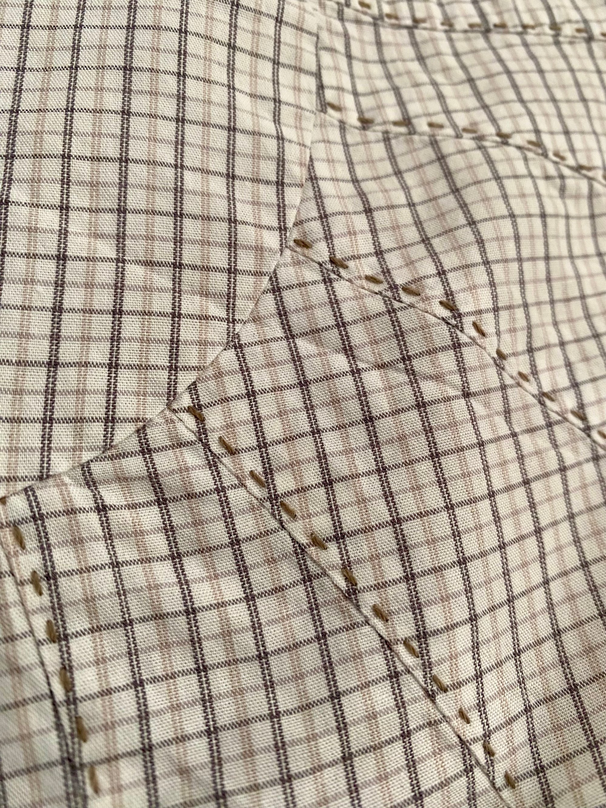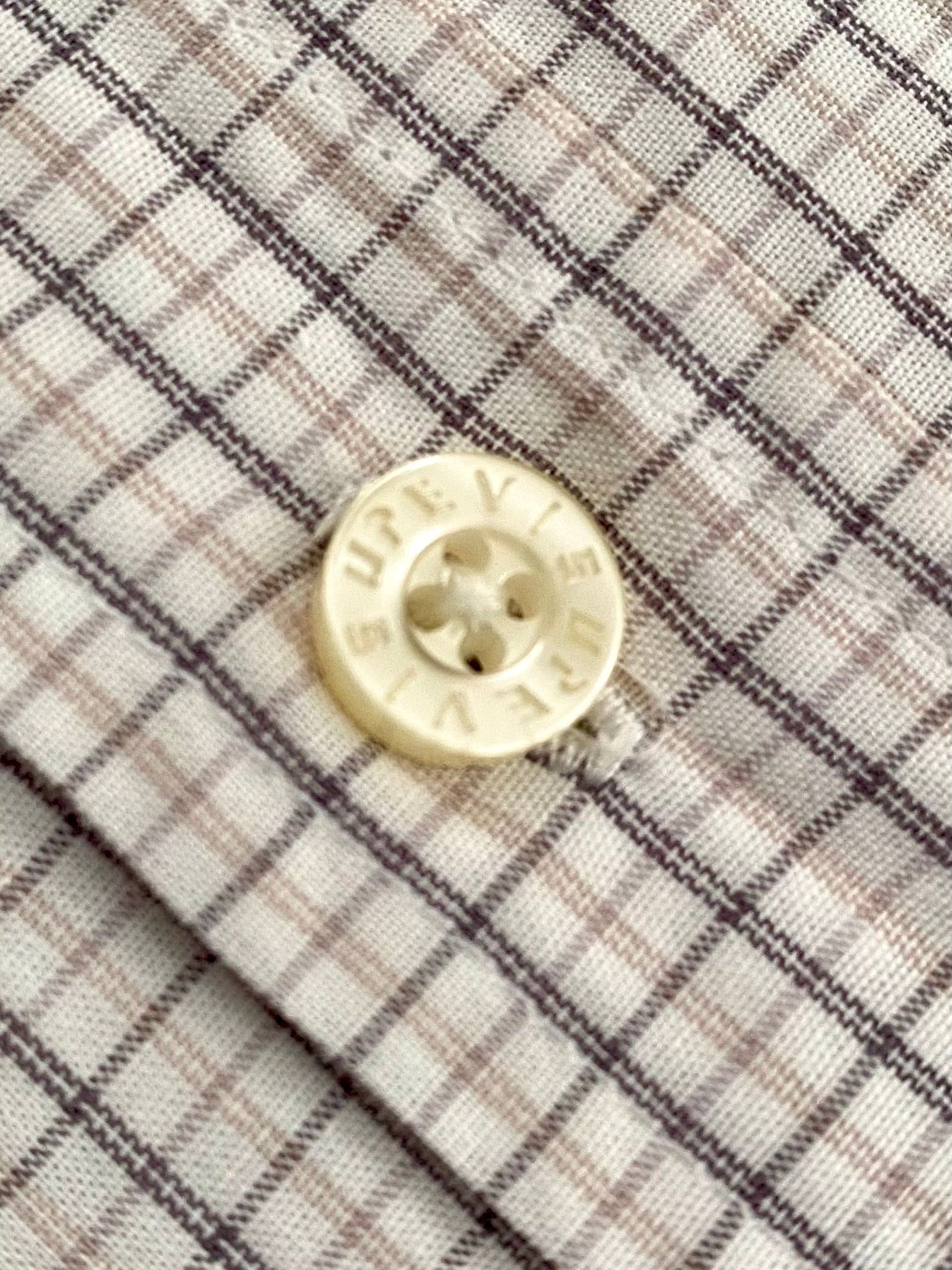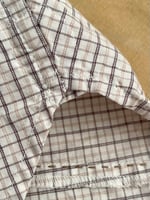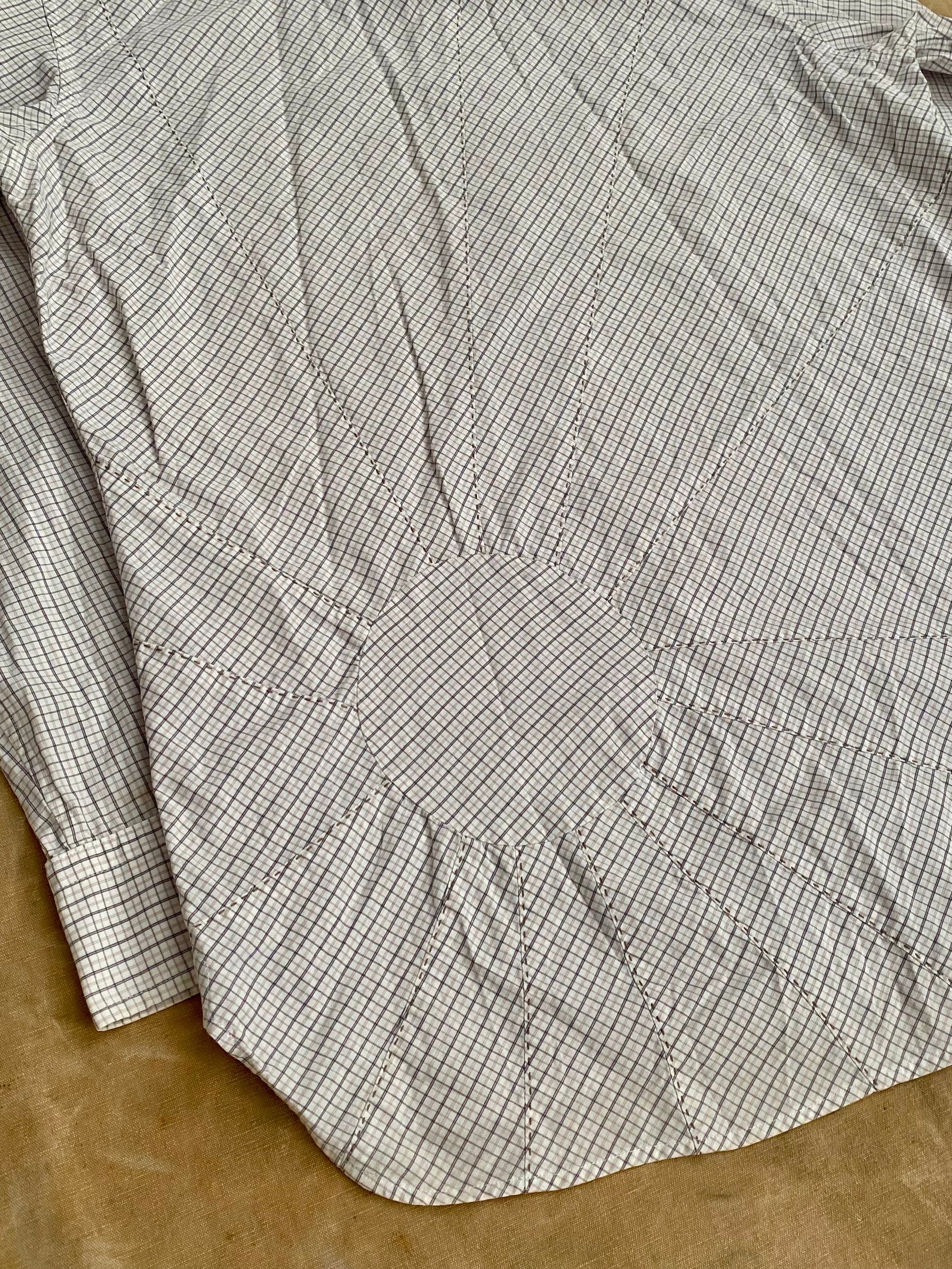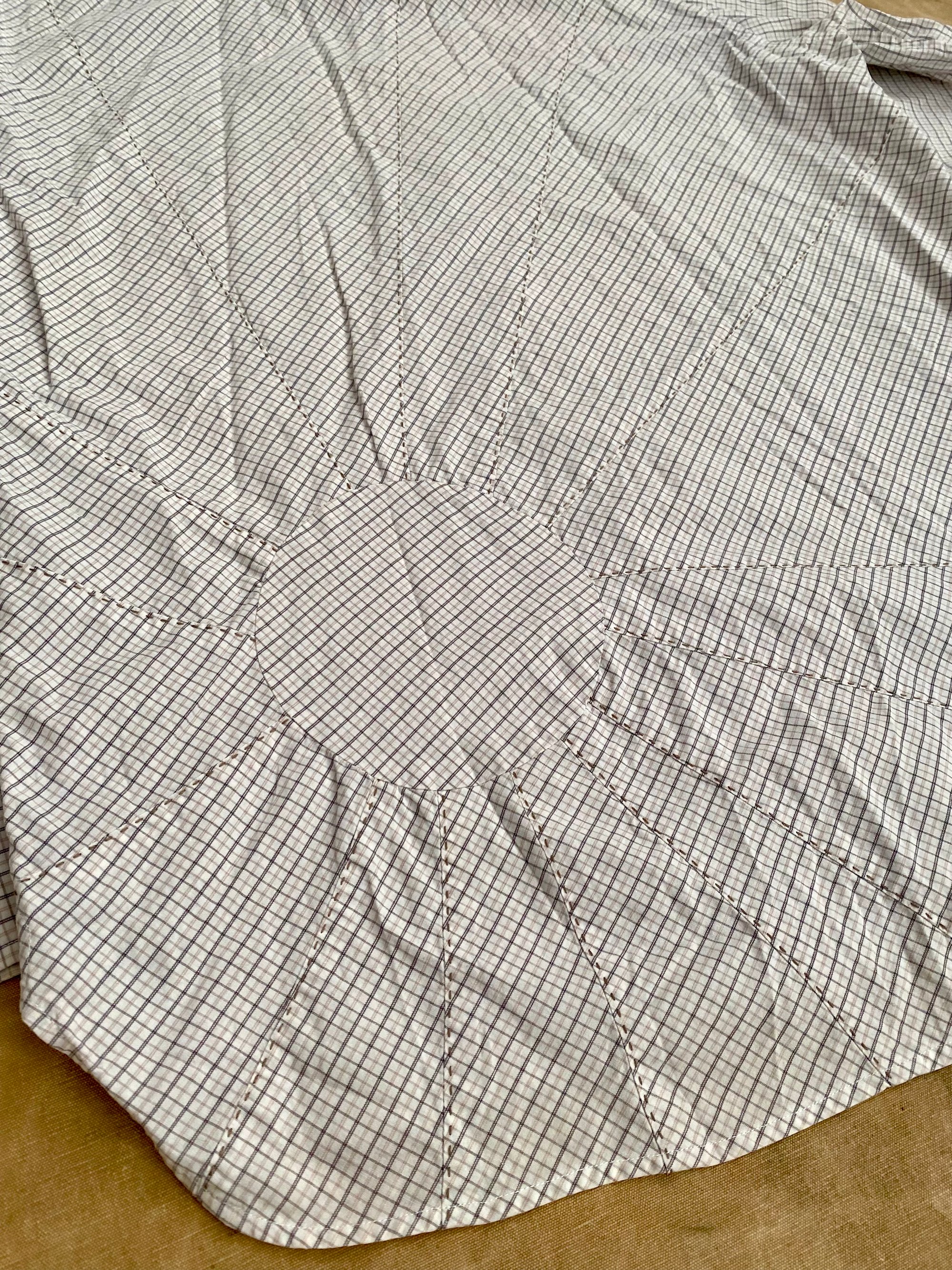 Crazy Oki-ni x Evisu collab shirt, featuring a distinctive micro-check pattern. It is characterized by the unique embroidered logo on the chest and a cool rising sun stitching work on the back.