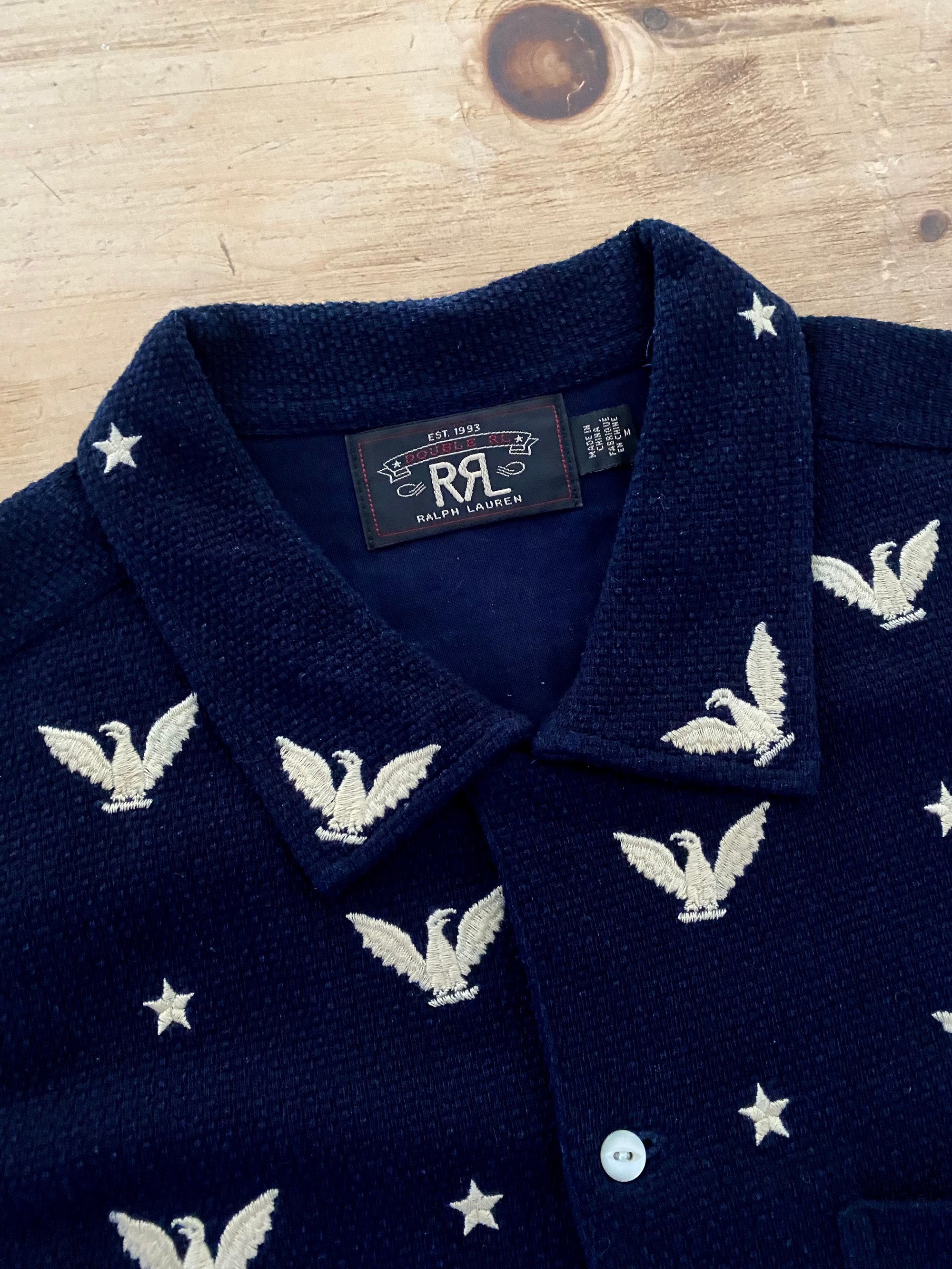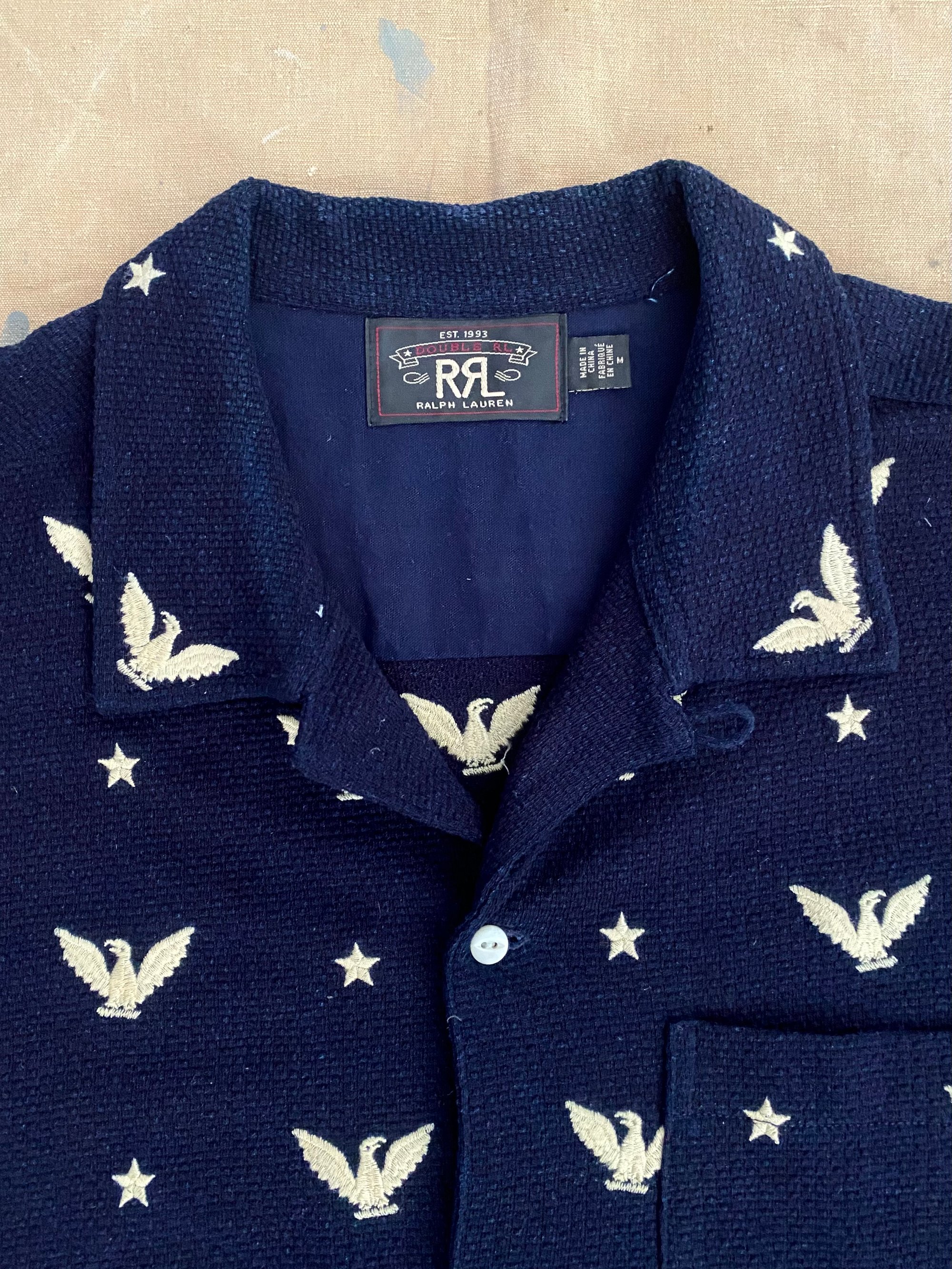 RRL EAGLE AND STAR EMBROIDERED INDIGO MESH SHIRT