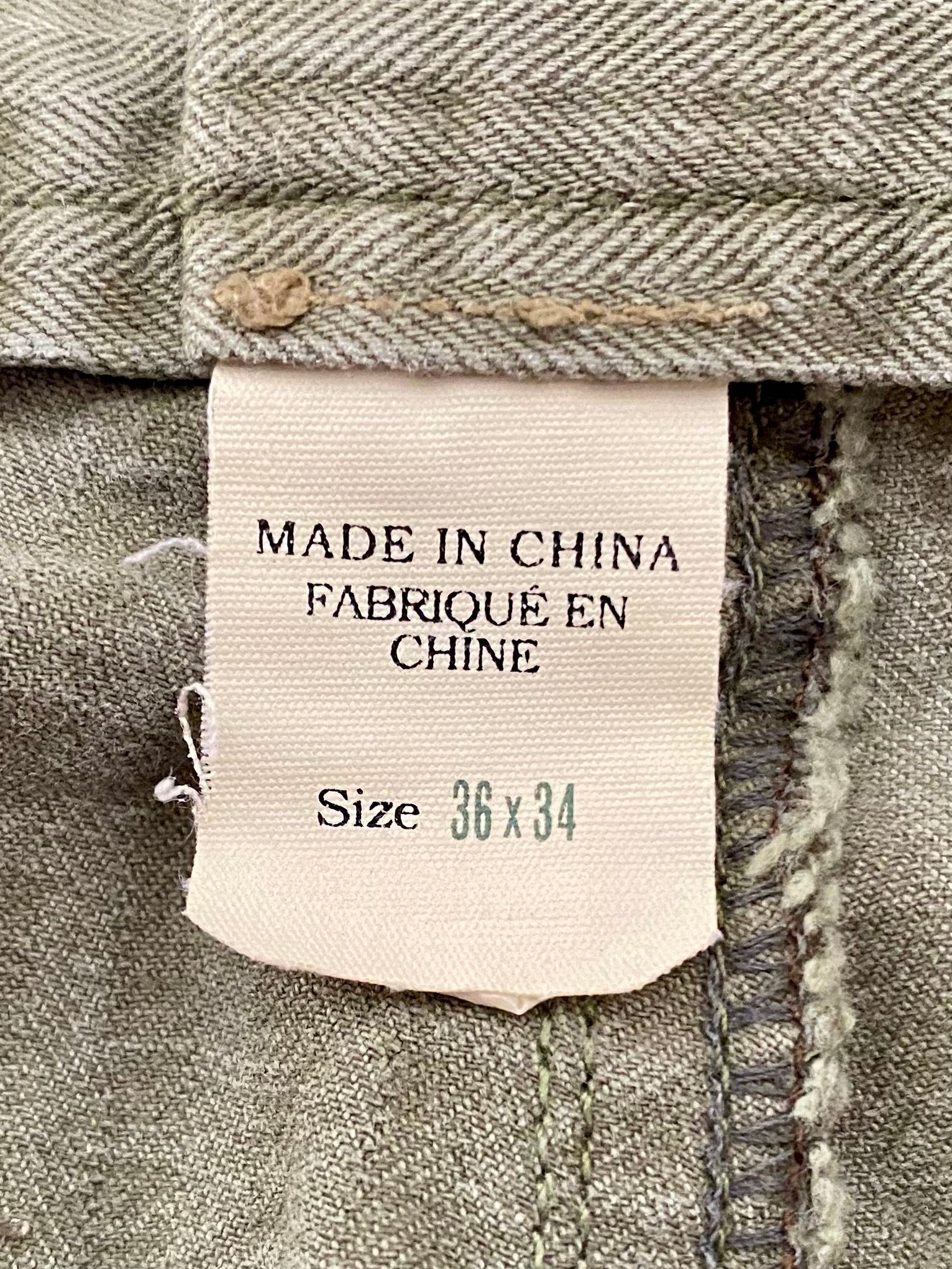 SIZE Size on tag says 36 x 34. Please see actual measurements.