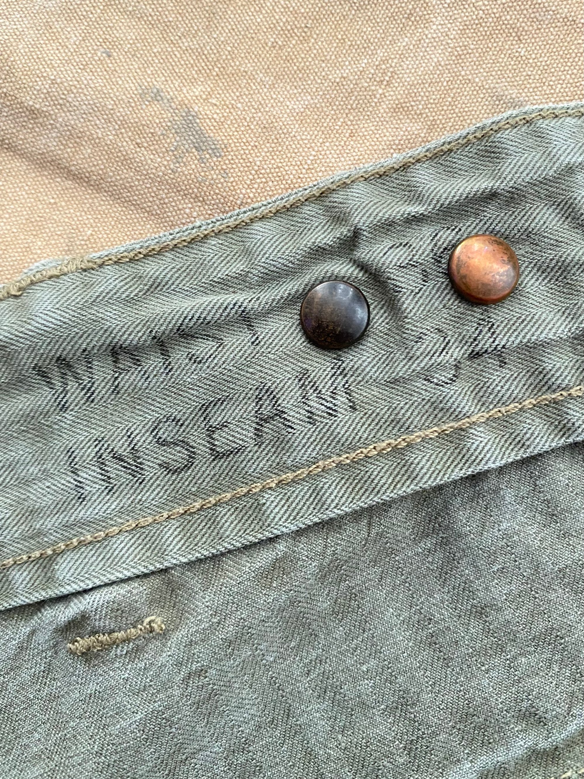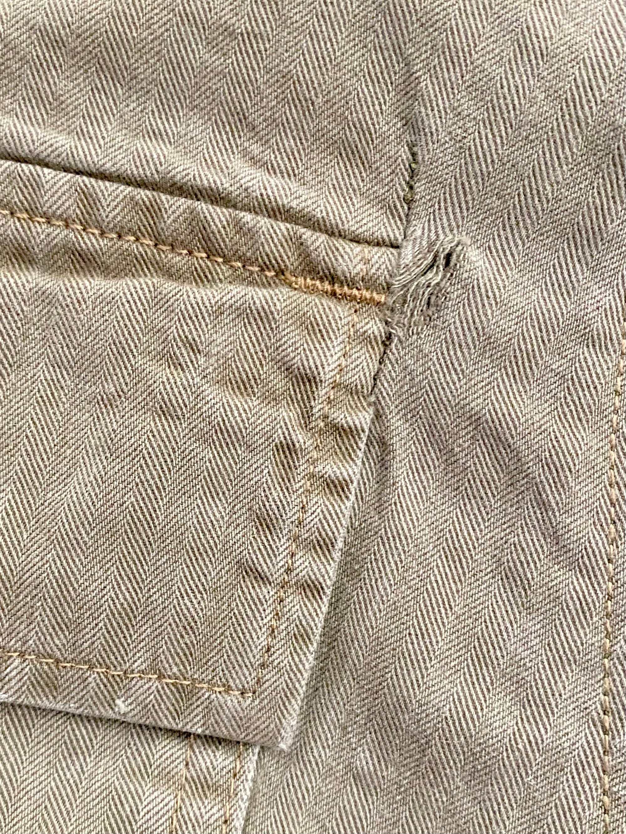 CONDITION Professionally repaired on crotch and back (please see pictures). Small rip on top right corner of the back left pocket (please see pictures). Minor signs of wear. Overall in great strong condition. They come with original swinging tag.