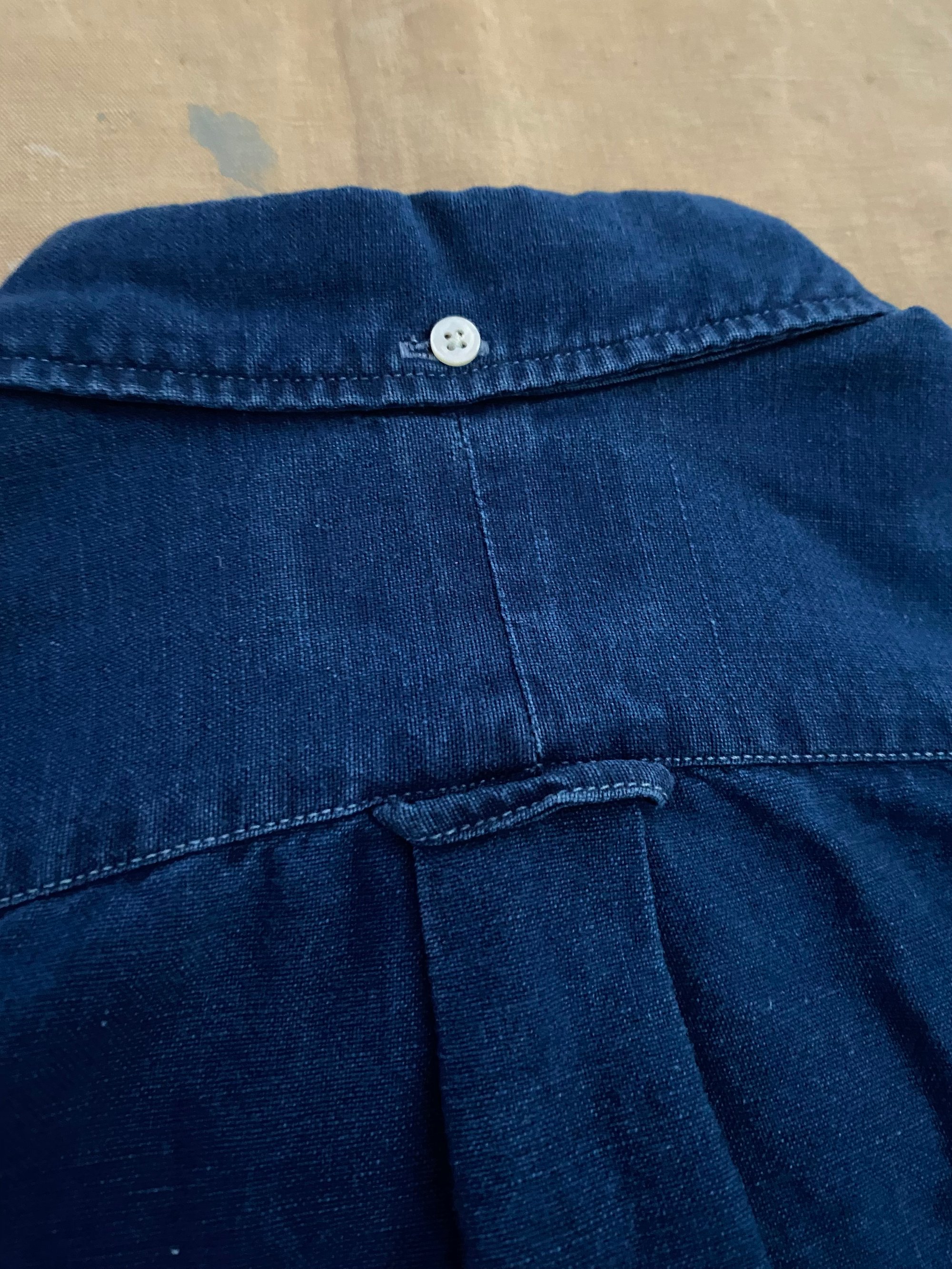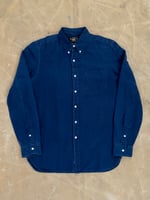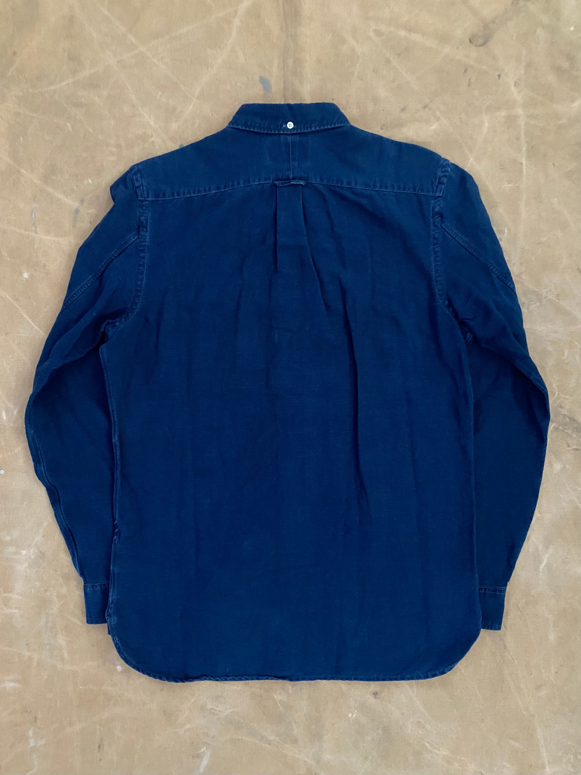 DESCRIPTION A button down shirt woven from Japanese indigo-dyed light Oxford cloth. Washed to achieve tonal dimension and an authentic timeworn effect, the shirt is inspired by a 50s archive piece and it features genuine mother of pearl buttons.