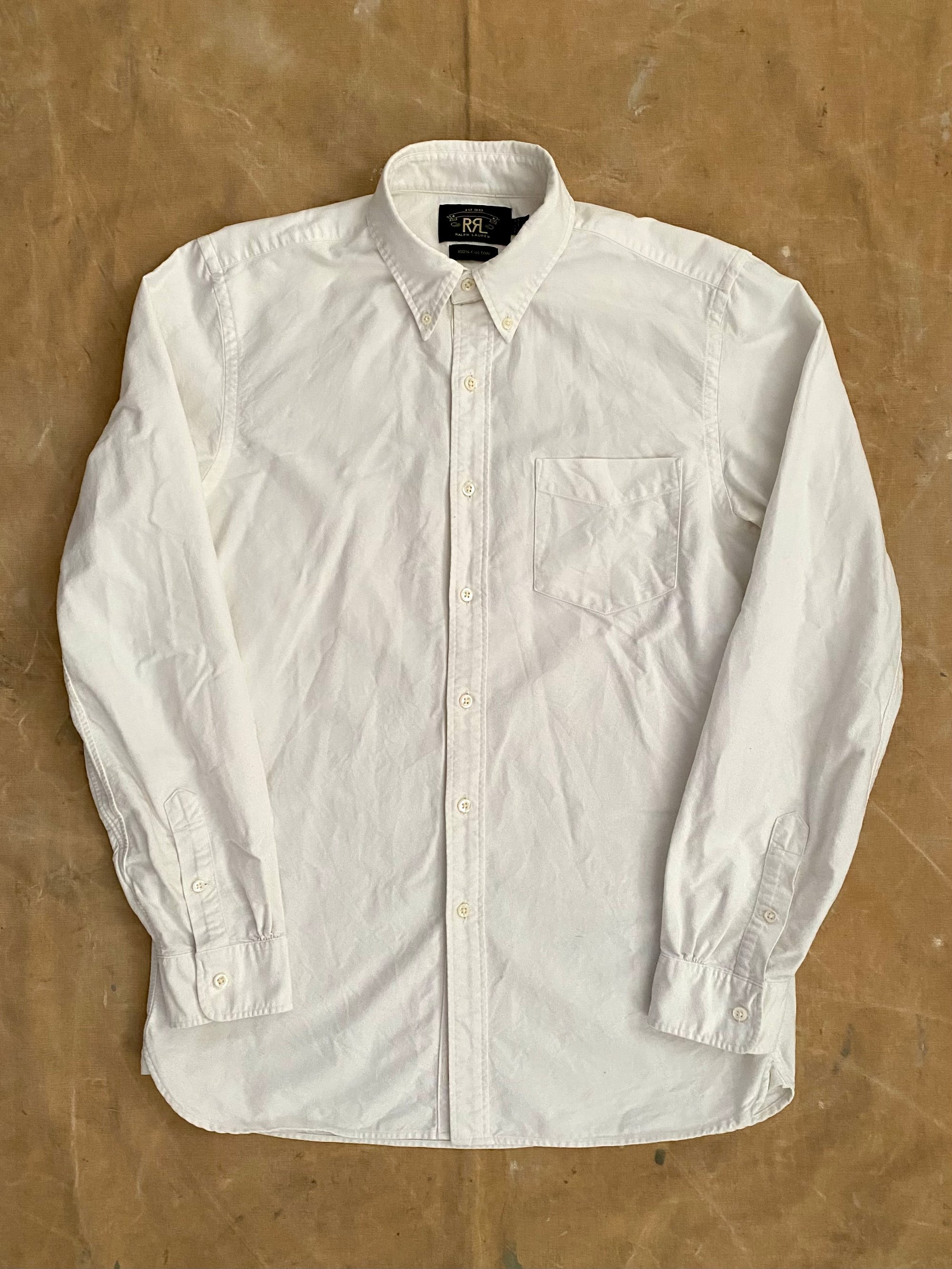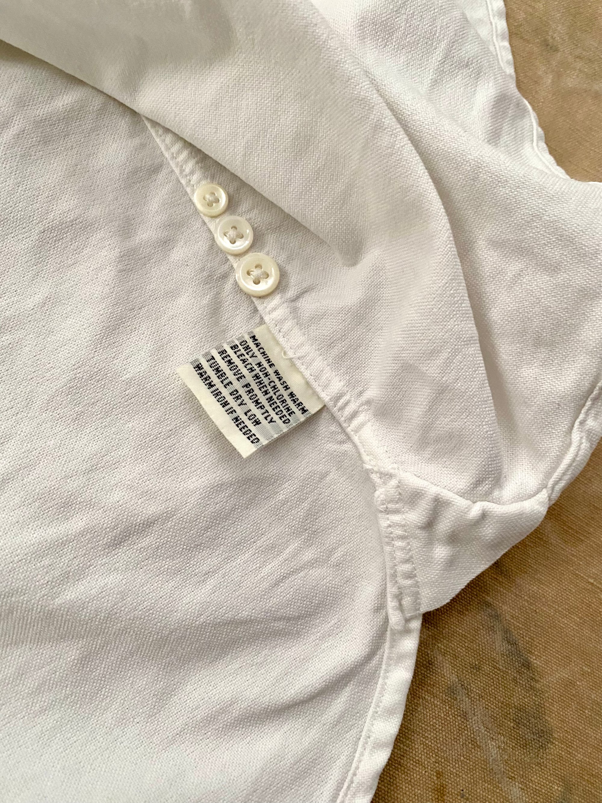DESCRIPTION A button down Oxford shirt woven from Japanese cotton oxford cloth. The shirt is inspired by a 50s archive piece.