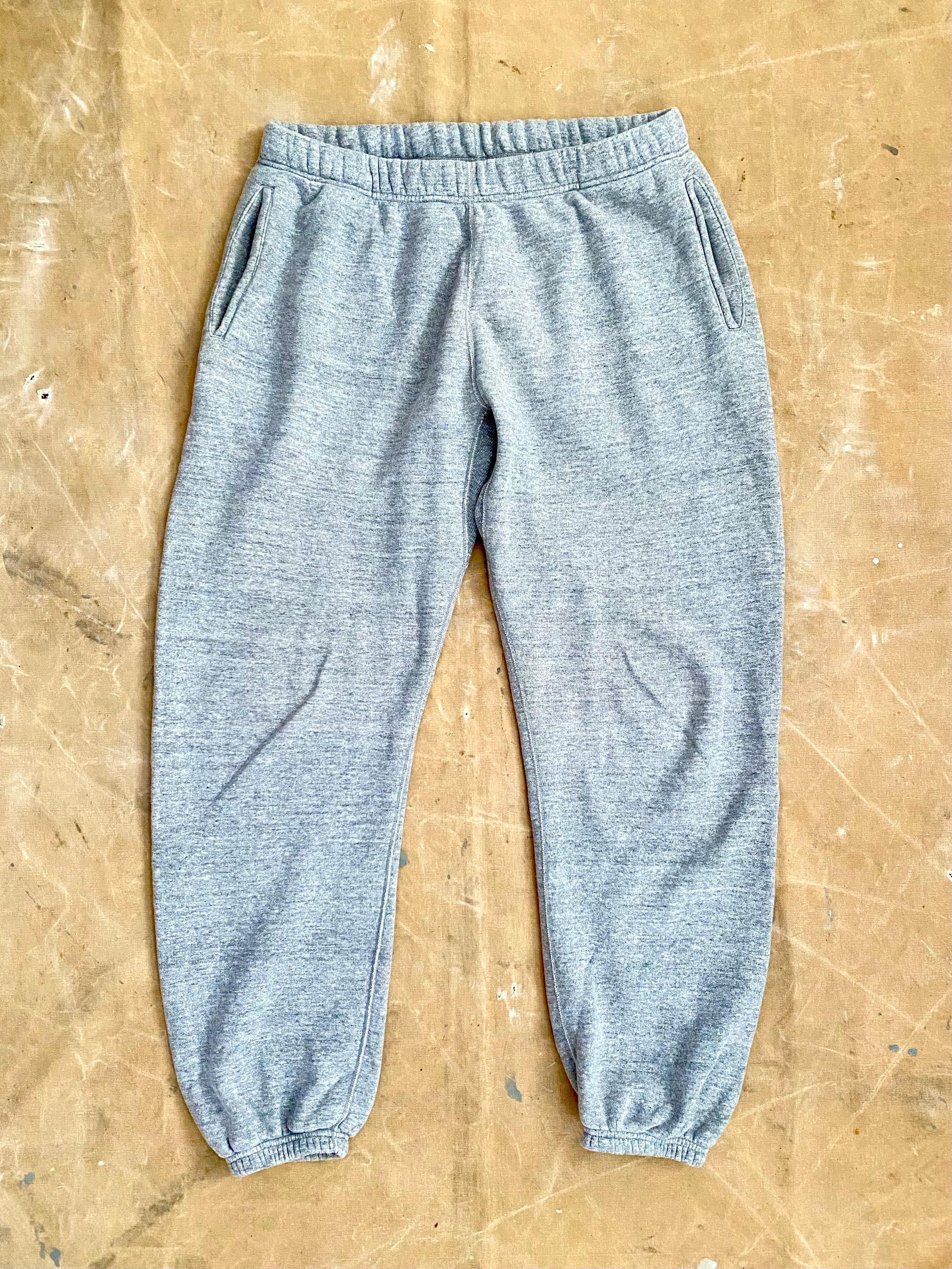 The Real McCoy’s 10 oz. sweatpants are the archetypal cotton sweatpants, directly inspired by those first introduced to the market in the 1920s. The loop-wheel knitted cotton is a brushed loopback French terry, making it warmer and softer than its unbrushed counterpart. Loop-wheel machines, which produce this tubular construct ed fabric, are renowned for their slow knitting pace, producing only a single meter of fabric per hour. However, this low thread tension technique sets them apart from contemporary manufacturing methods and creates an exceptional and distinctive fabric. The resulting material is reminiscent of hand-woven textiles and possesses a unique stretchy quality and washed look, similar to old American sweatpants that can only be reproduced on a loop-wheel knitting machine.