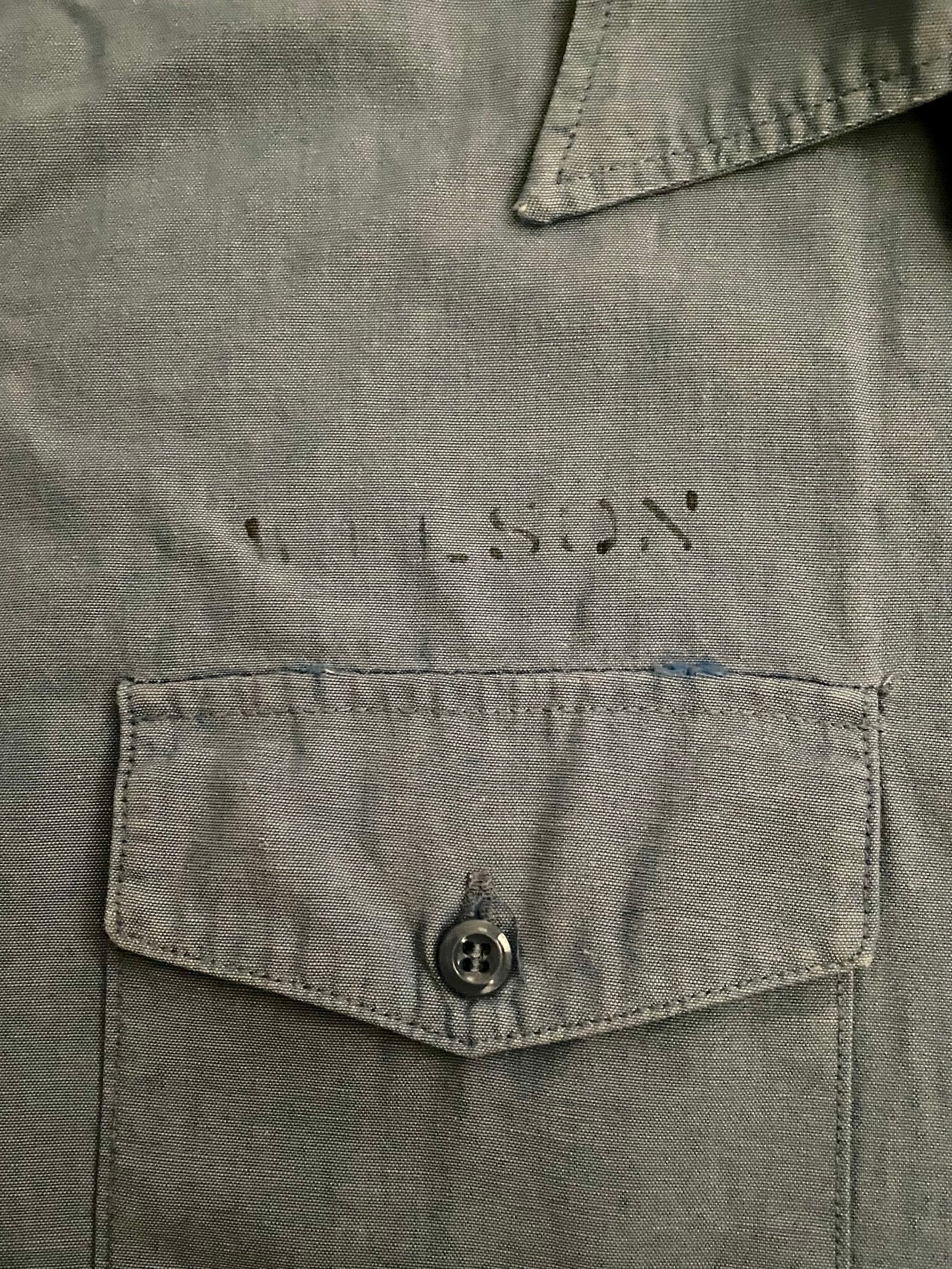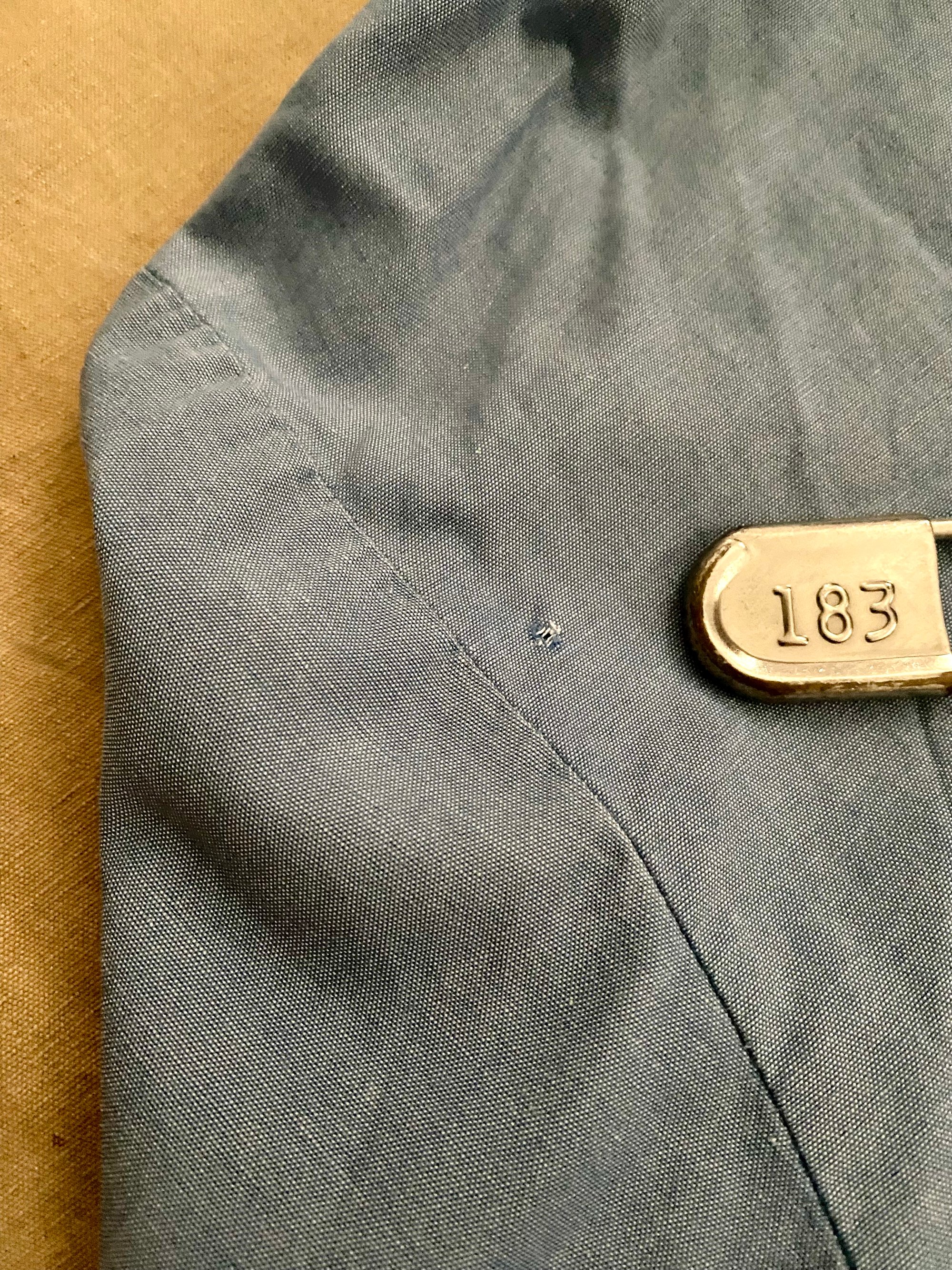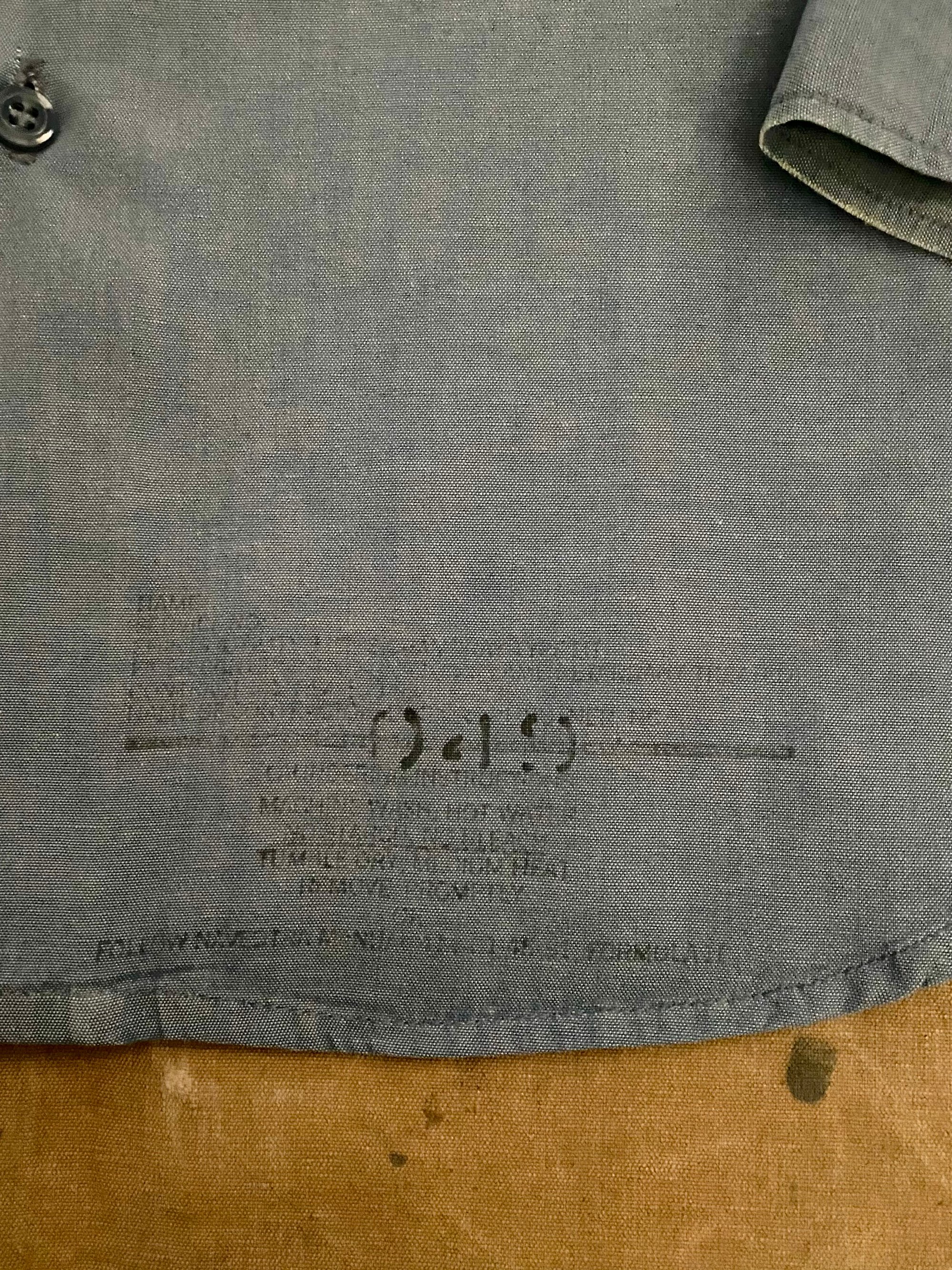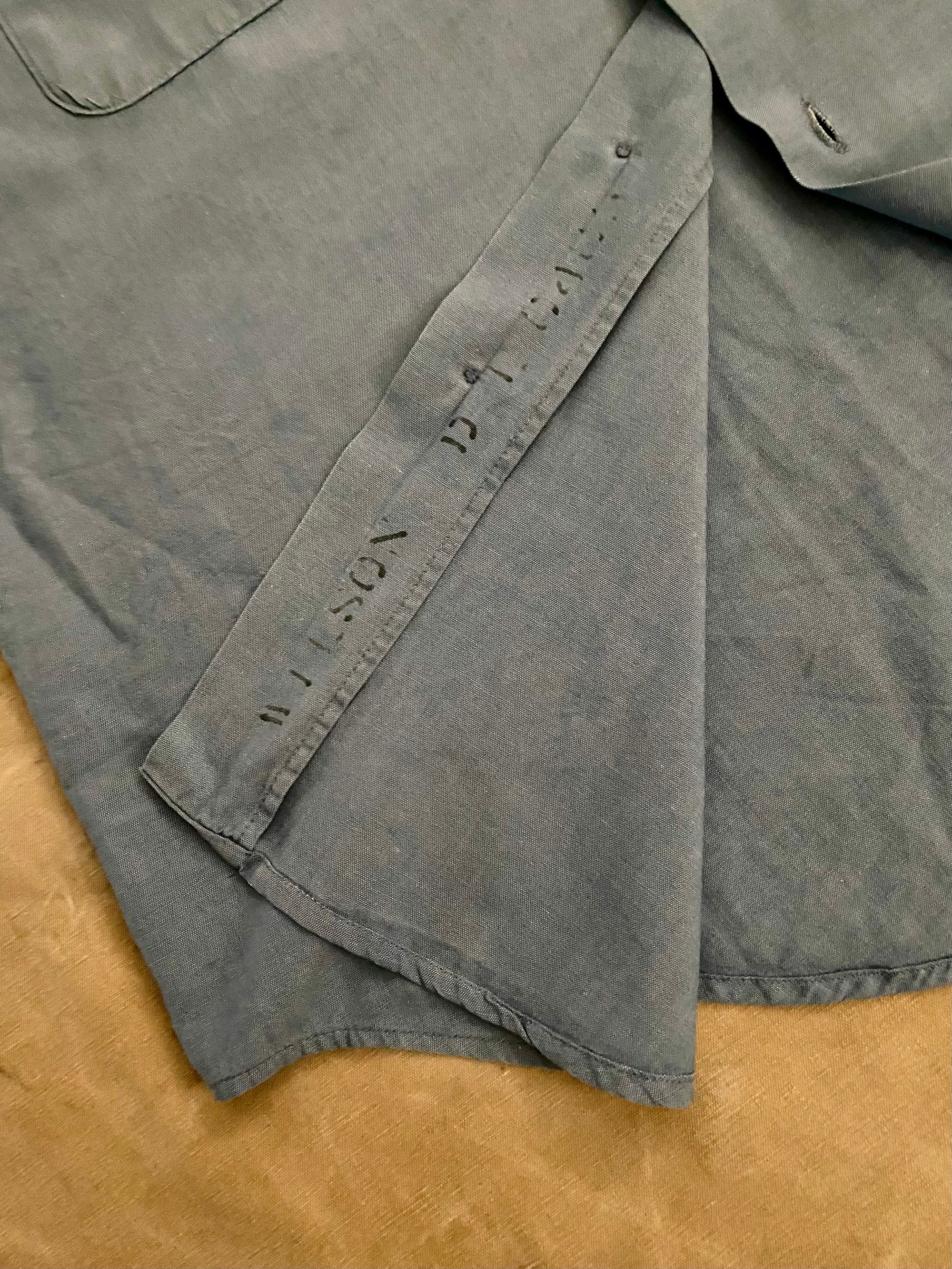 CONDITION Micro hole on left shoulder. Ripped on left cuff. Except that, the shirt is in great strong condition with minor signs of wear. No missing buttons. Fabric still dark and crispy.